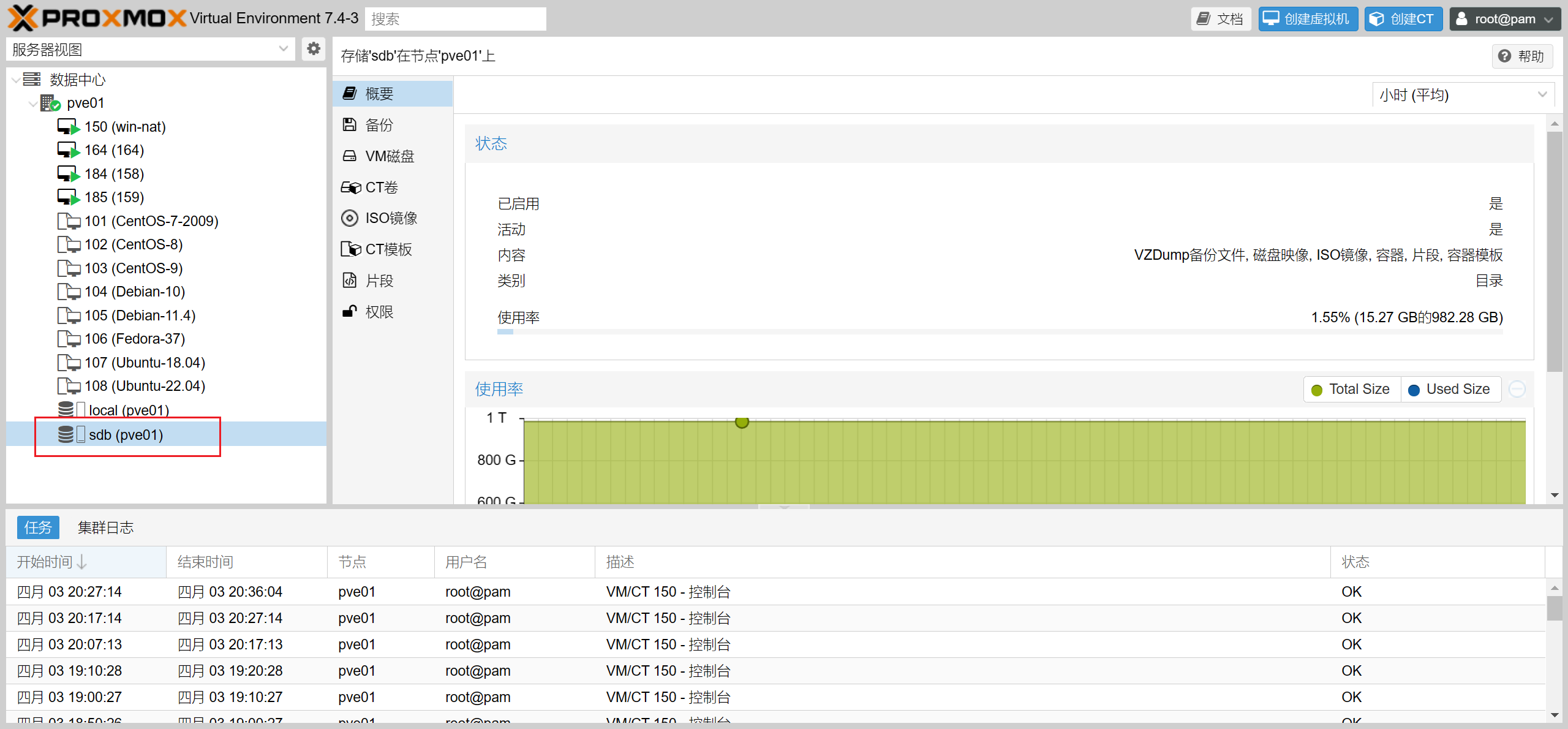 /dev/sdb 这块硬盘就添加完毕,几秒钟后就可以在节点里看到硬盘大小。![Proxmox VE(PVE)添加硬盘做存储 [引]](https://kuwi.net/wp-content/uploads/2024/04/post-809-6624acc1a1cee.png)